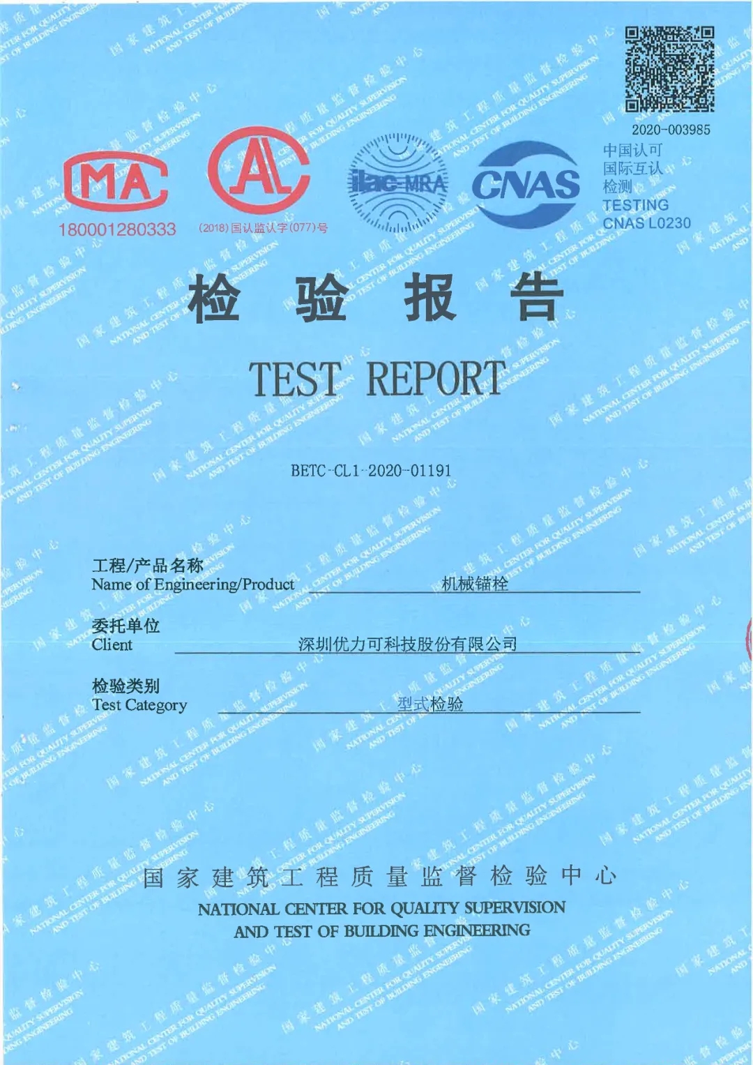 優(yōu)力可錨栓測試數(shù)據(jù)如下: